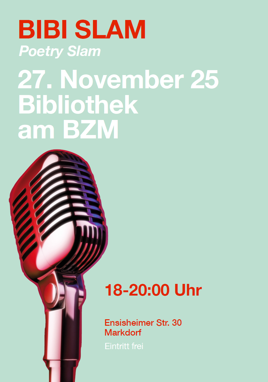 Am Donnerstag, den 27.11.2025, findet in der Bibliothek des BZM von 18:00 Uhr bis ca. 20:00 Uhr zum ersten Mal der Bibi Slam statt.