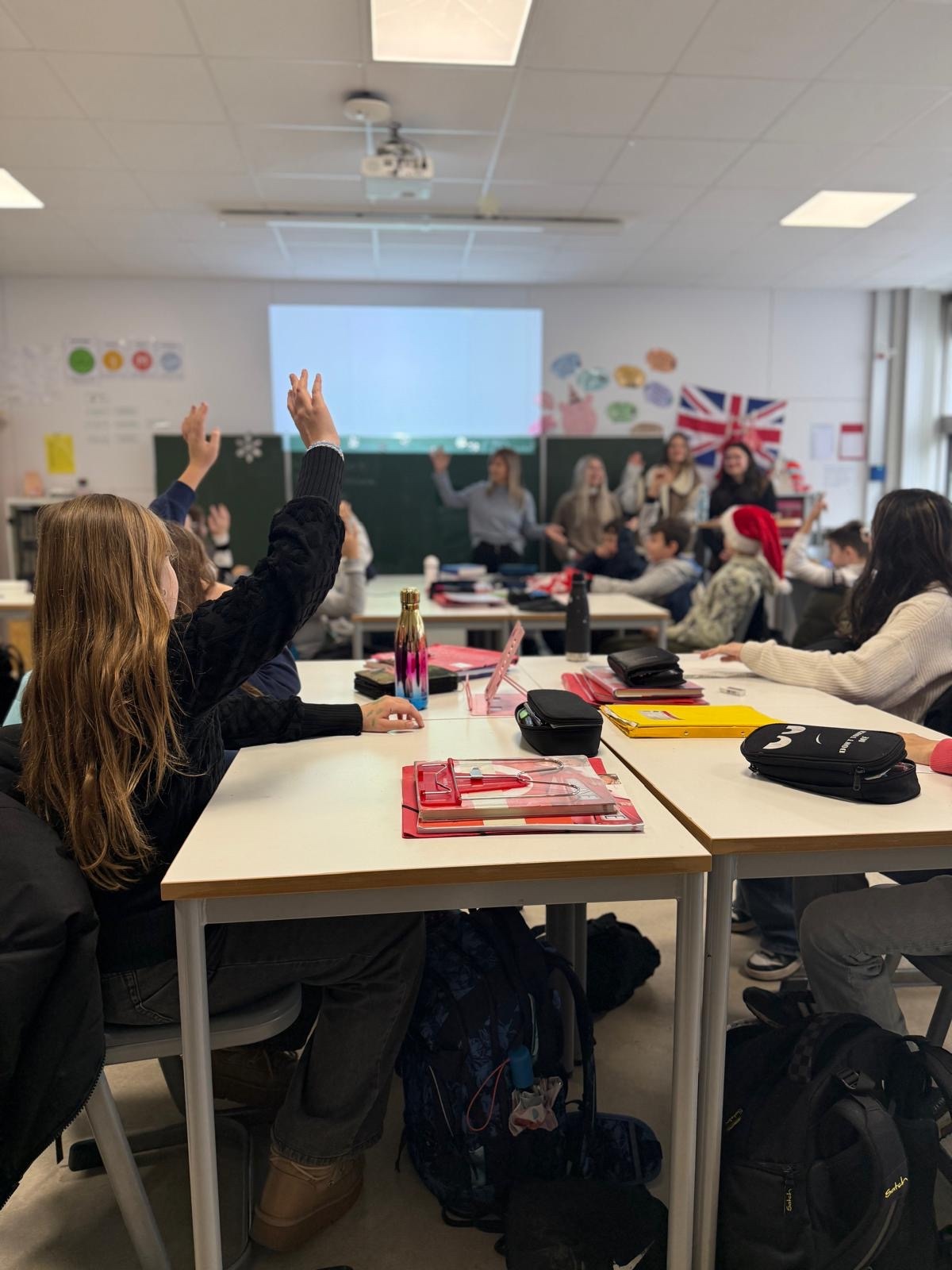 Letzte Woche besuchte uns eine Gruppe deutscher und israelischer Lehramtstudenten für das Fach Englisch. Die PH Weingarten kooperiert seit 2019 mit zwei Universitäten in Israel, dem Beit Berl College nahe Tel Aviv und dem College of Sakhnin for teacher Education nahe Nazareth. Dabei treffen sich die deutschen und israelischen Studenten zunächst virtuell um eine Unterrichtssequenz zu planen, danach folgt ein Besuch der israelischen Studenten in Deutschland. Dieses Jahr ging es um eine Hörverstehensstunde und dabei mussten die Studierenden selbst einen Podcast produzieren und dazu Aufgaben entwickeln. Damit die Planung nicht nur auf dem Papier bleibt, kamen die Studenten am Mittwoch zu uns an die Schule und unterrichten in Klassenstufe 6, 8, 9 und 10 ihre vorbereiteten Stunden. Dabei haben Sie sich Themen wie Birthday celebrations around the world, a culture box, a day in Jerusalem, Social Media, AI and fake news ausgesucht. Für alle Beteiligten war es ein sehr spannender, lehrreicher und besonderer Schultag.